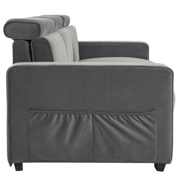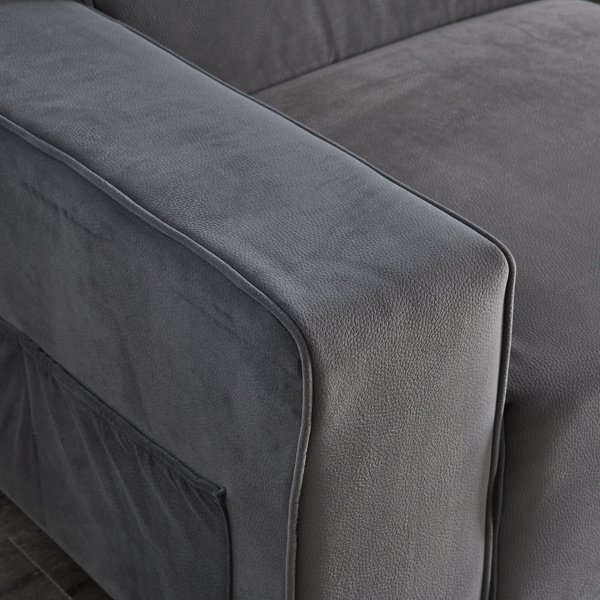Home > 306*96*83cm Velvet, 26cm Fully Removable Armrests, Three-Seater With Side Pockets, Backrest Pull Points, Indoor Multi-Person Sofa, Dark Gray