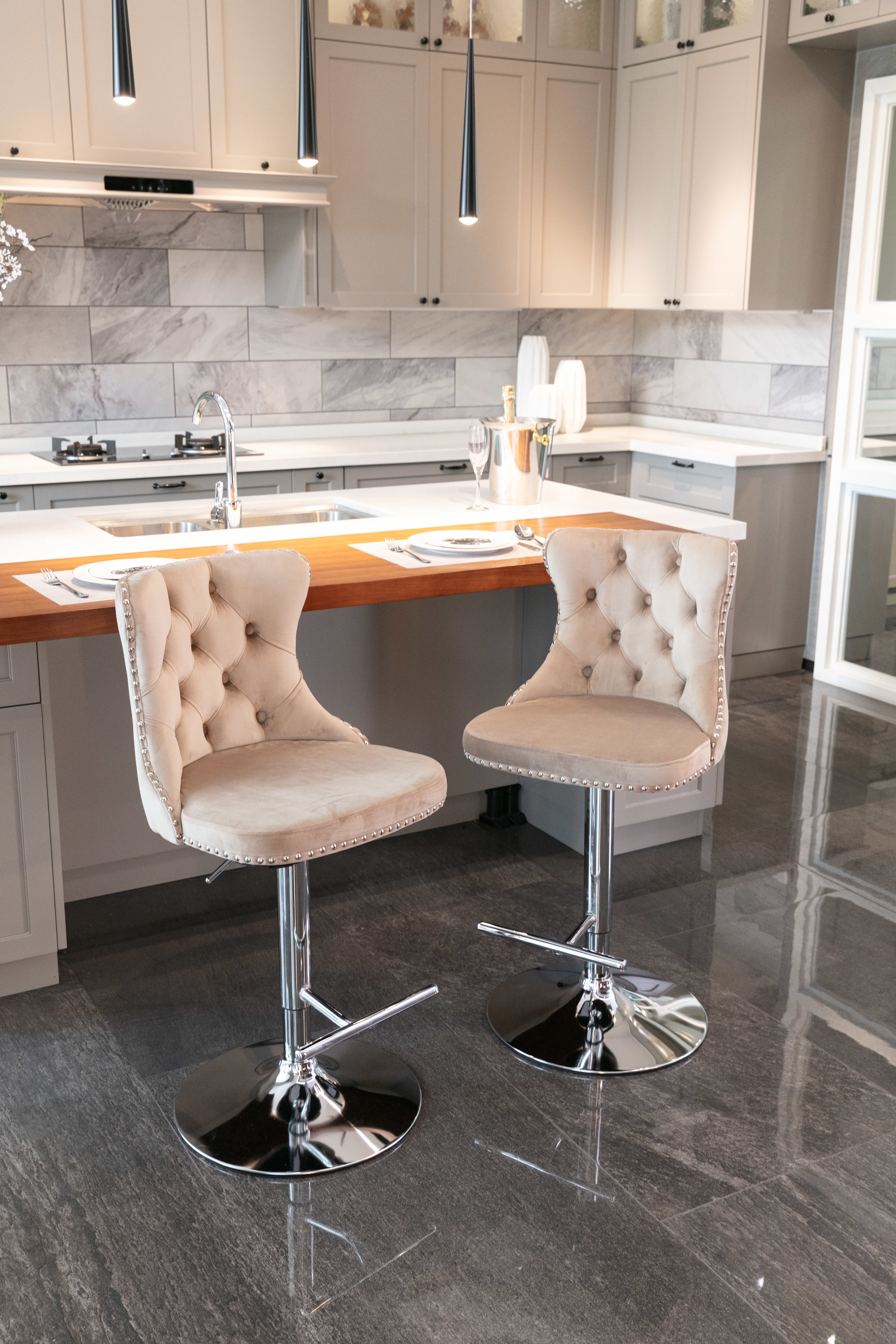 Home > A&A Furniture,Swivel Velvet Barstools Adjusatble Seat Height from 25-33 Inch, Modern Upholstered Chrome base Bar Stools with Backs Comfortable Tufted