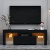 Black TV Stand with LED RGB Lights,Flat Screen TV Cabinet, Gaming Consoles - in Lounge Room, Living Room and Bedroom(Black)