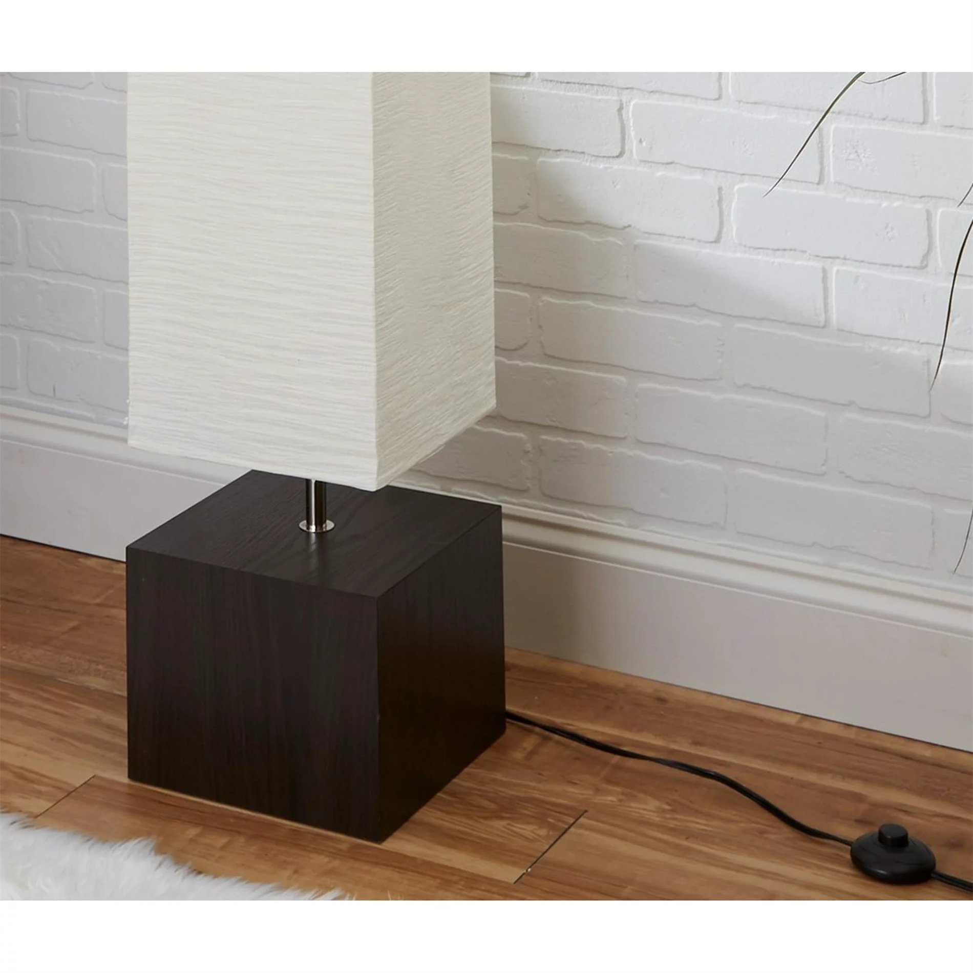 White Rice Paper Floor Lamp With Dark Wood Base Is The Perfect Lamp For Your Living Room, Office Or Bedroom. This Lamp Distributes Subtle Light That Will Brighten Your Space While Creating A Cozy Atmosphere. This Trend-Forward Floor Lamp Features Two Sockets For More Diffused Lighting And A Sturdy Construction That Is Easy To Assemble. With A Simplistic White Rice Paper Shade And Dark Wood Finish Base This Lamp Is Sure To Fit In Perfectly With Many Home Decor Styles. The Texture Of The Shade Will Bring A Little Dimension To Large Or Small Spaces. .This Floor Lamp Can Easily Be Turned On By The Foot Peddle That You Just Gently Stop On Till You Hear A Click And Lamp Turns On And Off. The White Rice Paper Floor Lamp With Dark Wood Base Is Square In Shape Giving More Of A Dimensional Image. Its Sure To Add A Tasteful Touch To Your Room Or Office.