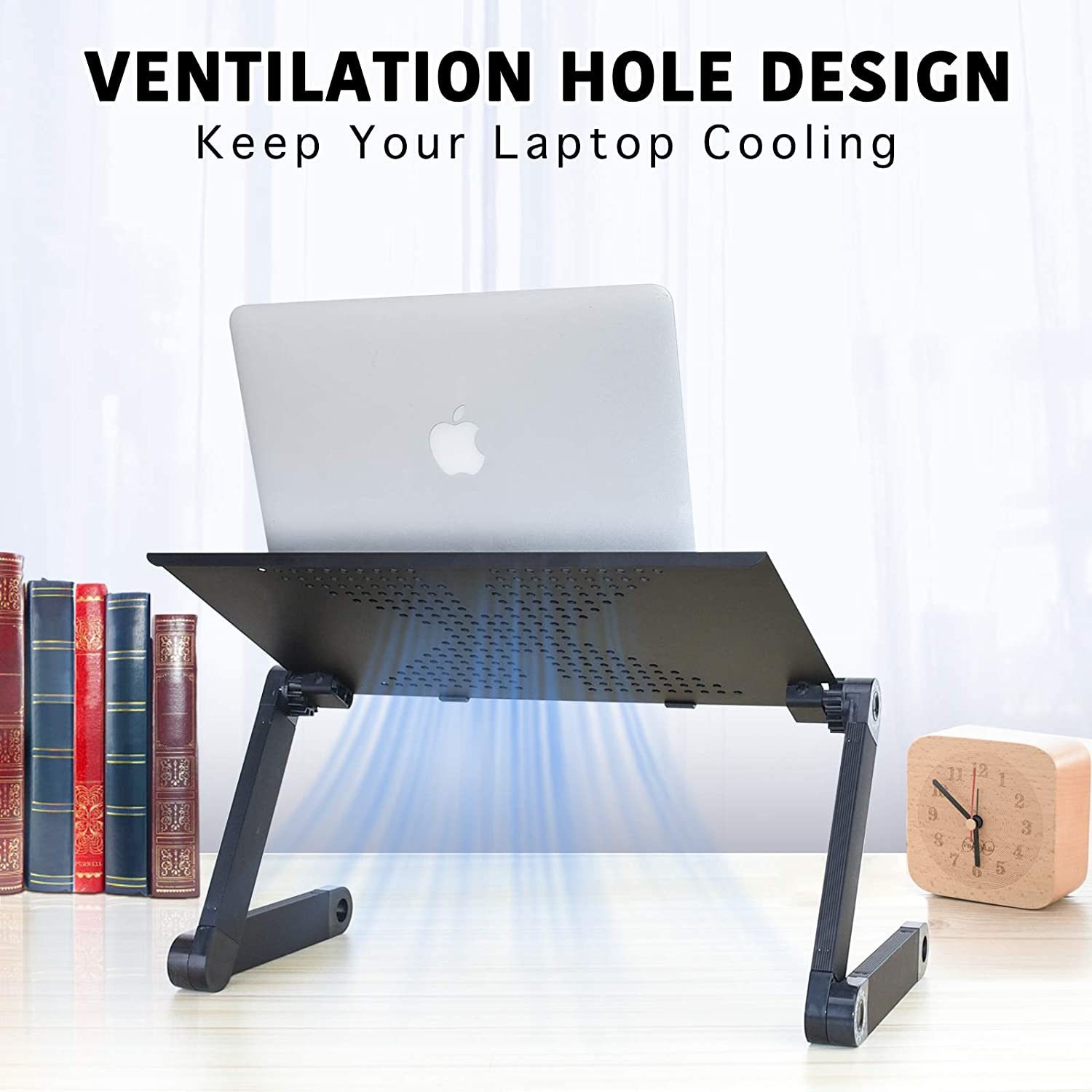 3.This laptop stand is designed with full control and flexibility for your convenience so that you can use your computer at the most comfortable position. It will reduce neck and shoulder stress due to hours of using your computers, benefits your health and make you free from the neck ache and shoulde