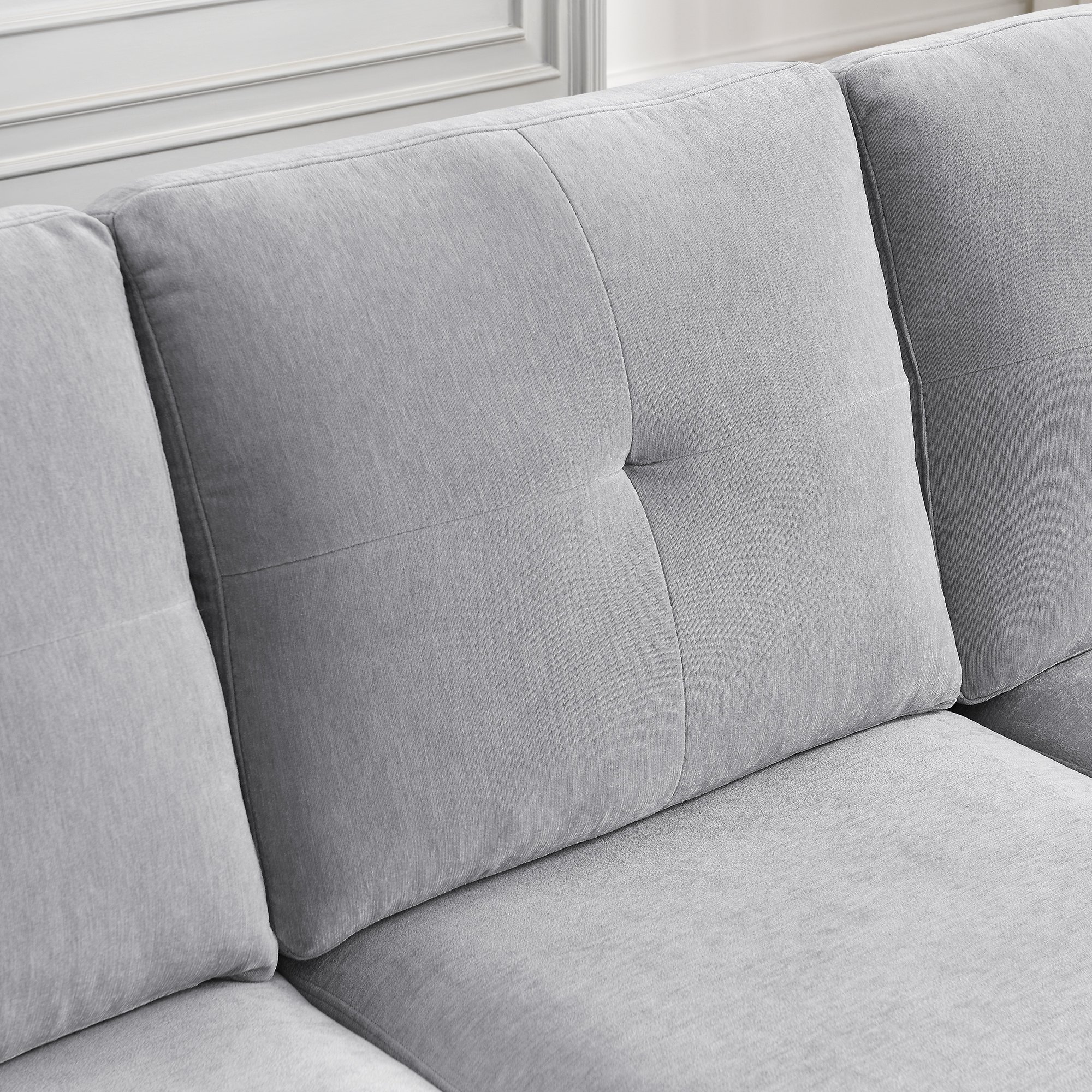 2.[STURDY FRAME]:Our sectional sofa is based on a solid hardwood frame with high density foam cushions built into soft chenille,rubber wood legs perfectly support the entire sofa and can be used for many years.