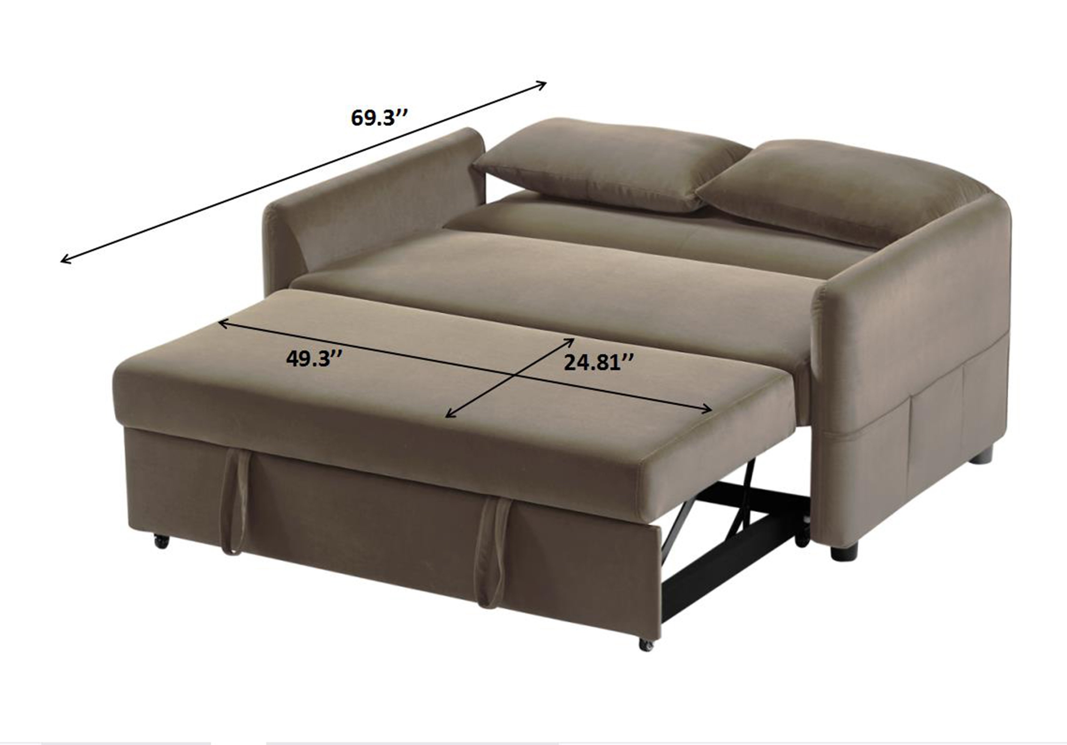 product description feature1: Convertible design: This multifunctional sofa chair bed can be easily and quickly converted into armchairs; visitor chairs and recliners. To meet your various needs; and no longer worry about unexpected visitors; let them have a comfortable bed to sleep in.2: Adjustable and convenient: The folding bed chair has a 3-level adjustable backrest; which can provide a comfortable sitting or lying experience. The convenient strap can be easily pulled out of the broaching part to form a bed.3: Comfortable fabric: The seat cushion filled with high elastic foam and polyester fiber filling can provide a comfortable filling structure; bringing extra comfort and longevity.4: It can be assembled with your friends; it takes about 40 minutes.Material:Fabric: Dutch velvet (velvet)Wooden frame: EucalyptusFeet: plastic rounded corners; metal rubber wheelsChair Product size: 57.1''*33.9''*33.1''Product size of broaching machine: 57.1''*69.3''*17.72''Product net weight: 126.73 poundsChair Packing size: 51.6''*44.1''*6.5'' Gross weight: 56 poundsBroaching machine packaging size: 50.4''*33.7''*13.8'' Gross weight: 90.4 poundsWeight bearing: 500lbs2 boxes/set