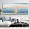 Home > Handmade Serene Seascape A Light Blue Oil Painting of a Sailboat on the Ocean Living Room hallway bedroom luxurious decorative painting