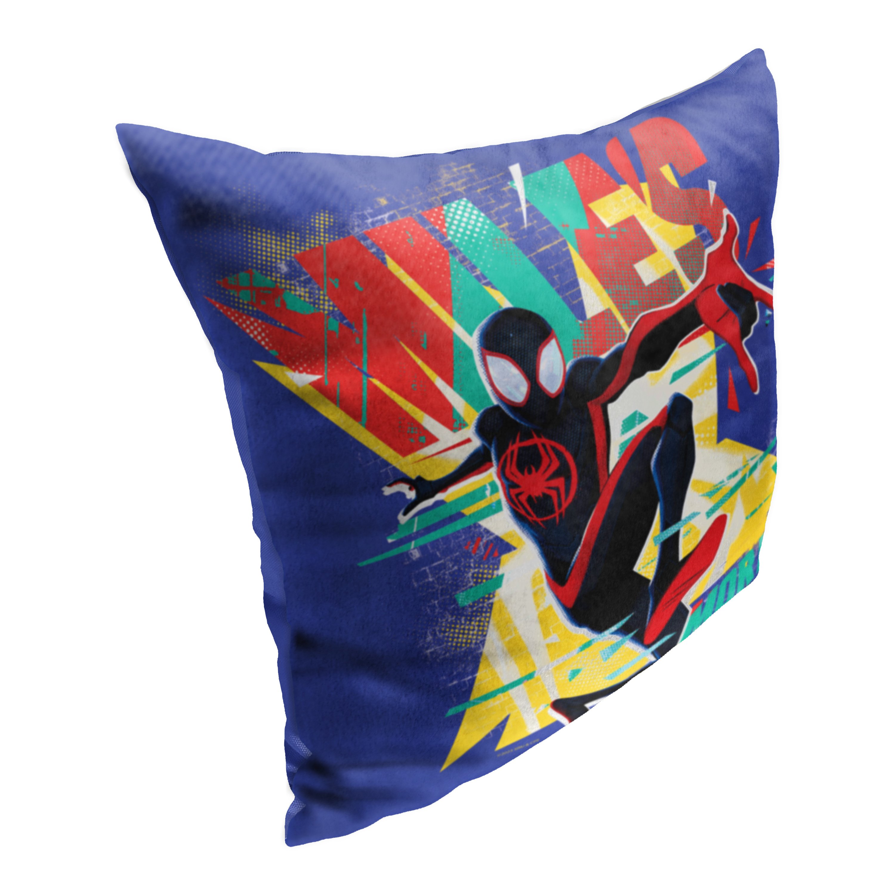 Indulge in ultimate comfort and softness with Marvel's Spider-Man Across The Spider-Verse "It's Miles" Soft and Comfortable Decorative Pillow. Measuring at 18" x 18", this double-sided pillow is the perfect size to adorn your bed, couch, or favorite reading nook. Made with premium 100% polyester material, our pillow is not only stylish but also incredibly soft and comfortable, making it perfect for snuggling up with a good book or movie